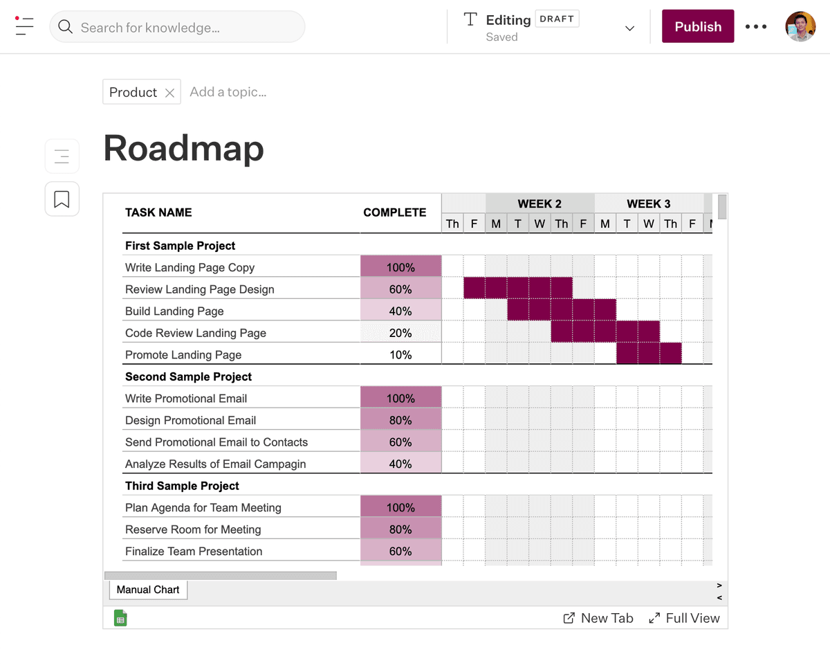 Just paste in a link to anything in Drive — and we do mean anything — to get an instant, live embed. Better yet, you can edit your embedded Sheets, Slides, and Docs directly within Slab!